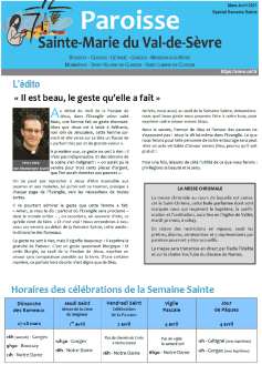 Journal – Mars-Avril 2021 – Spécial semaine sainte Publié 17 mars 2021 · Mis à jour 19 mars 2021 Journal - Mars-Avril 2021 - Spécial semaine sainte Type: pdf | Téléchargé 697 fois Recevoir l’alerte de parution du journal