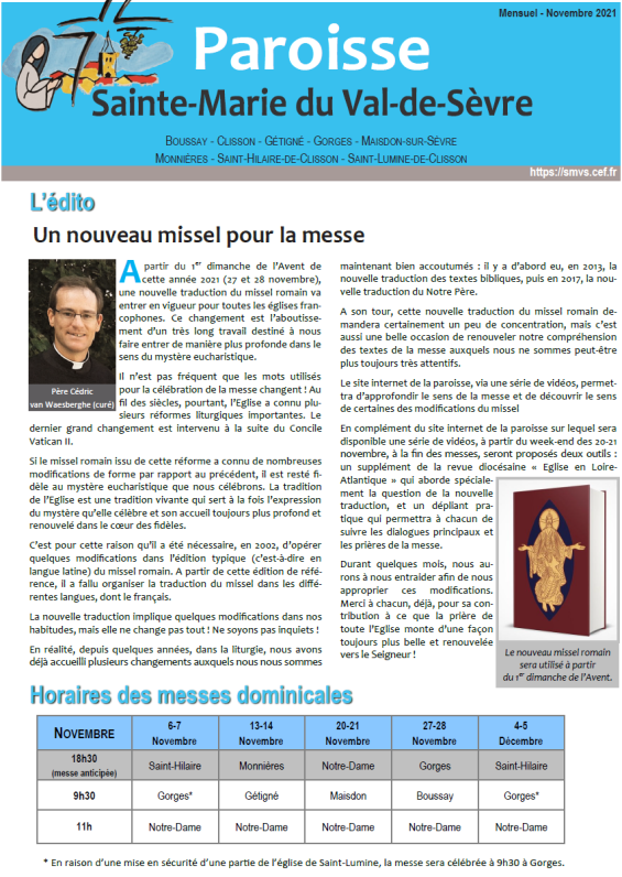 Journal – Novembre Publié 3 novembre 2021 · Mis à jour 7 novembre 2021 Journal – Novembre 2021 Type: pdf | Téléchargé 551 fois Recevoir l’alerte de parution du journal