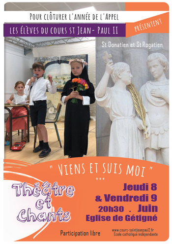 Les élèves du cours st Jean- Paul II en lien avec la paroisse Sainte Marie du Val de Sèvre présentent « Viens et suis moi »